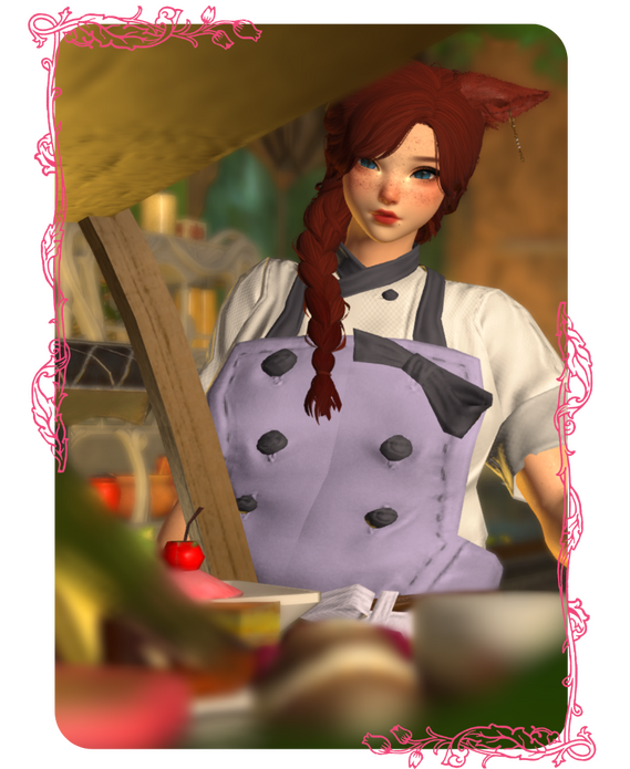 When Aerie Alowa leaves her native city of Limsa Lominsa for Ul'dah, she doesn't expect to write many letters home. Her parents, who are definitely not pirates, are a bit mystified that she'd want to be a landlubber, and they're rarely on shore anyway.Studious and a bit timid, she hasn't made many friends in her 27 years. She jumped at the chance to study pastry under the head baker of the Sultana herself. It's a new start, and this time she'll be the outgoing, popular, fun-loving person she always wanted to be.